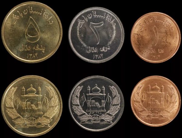 Afghanistan Coin Set of 1, 2 & 5 Afgani UNC from Roll quantity