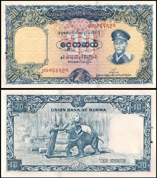 BURMA 10 Kyats Union Bank of Burma (1958) UNC General Aung San issue quantity