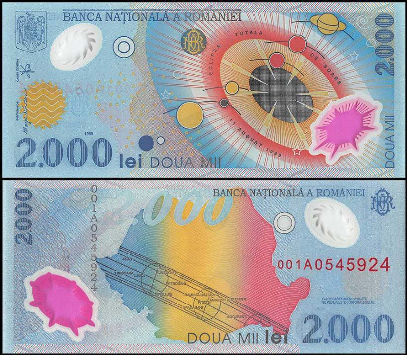 / Romania 2,000 Lei 1999, P-111b, UNC, Polymer